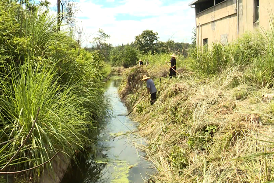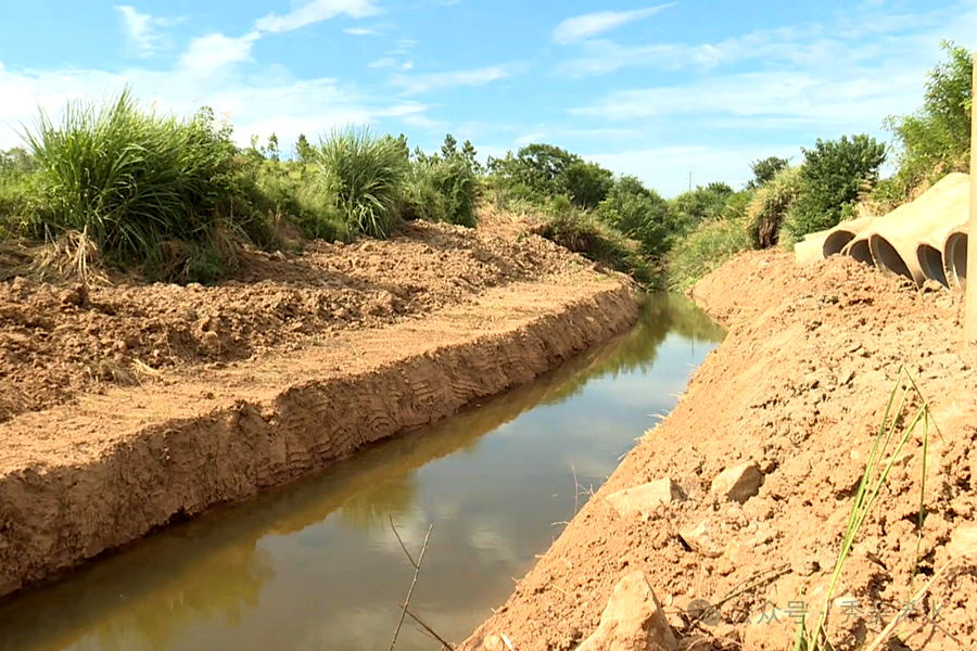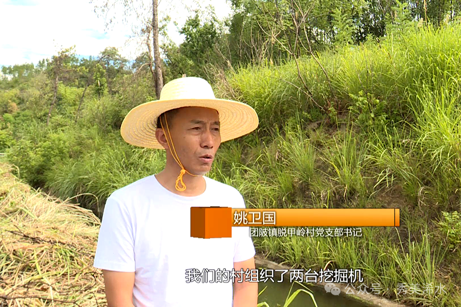 团陂镇脱甲岭村党支部书记 姚卫国:为了今年的抗旱灌溉、高温天气,我们的村组织了两台挖掘机进行渠道的清理,加工,还有我们的村干及村民。部分村民一起组织人工,把我们村3公里的地带今天基本上已经清完了。已经接近尾声了。我们的水已经很顺利的通过了。