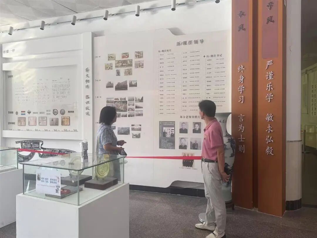 浠水一中副校长刘志勇介绍120年来浠水一中的历史,胡小英的曾爷爷胡震东是第七任校长。(摄影:记者熊星星)
