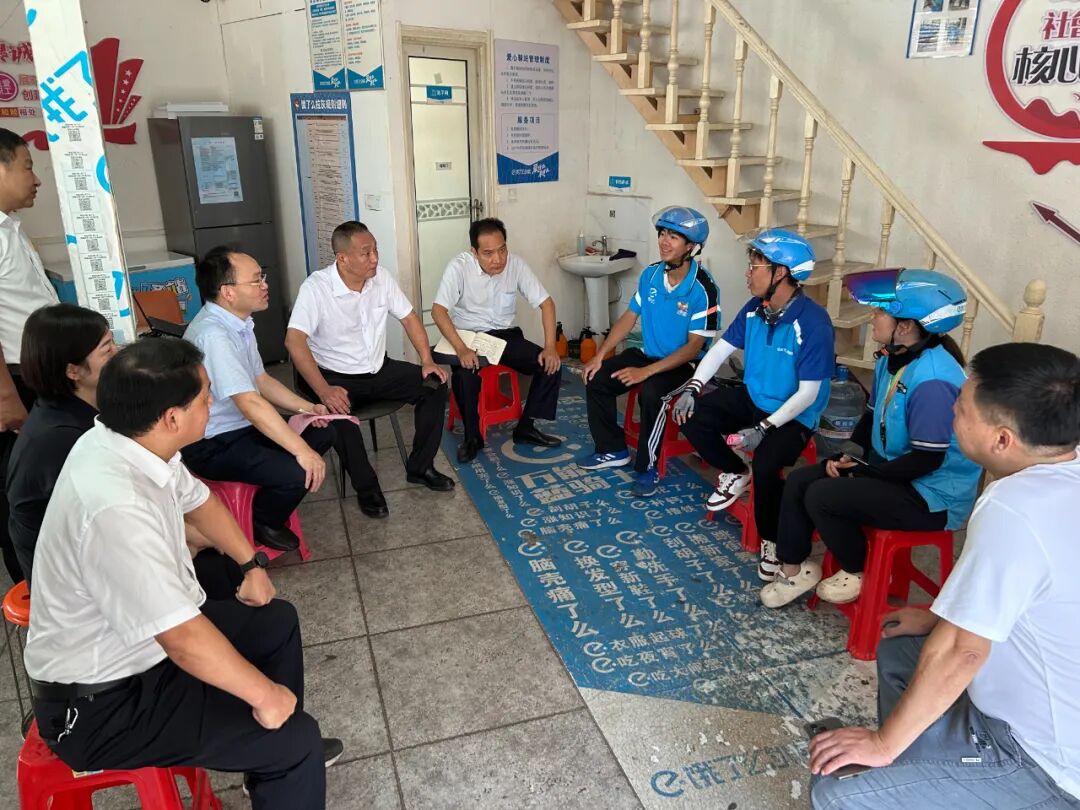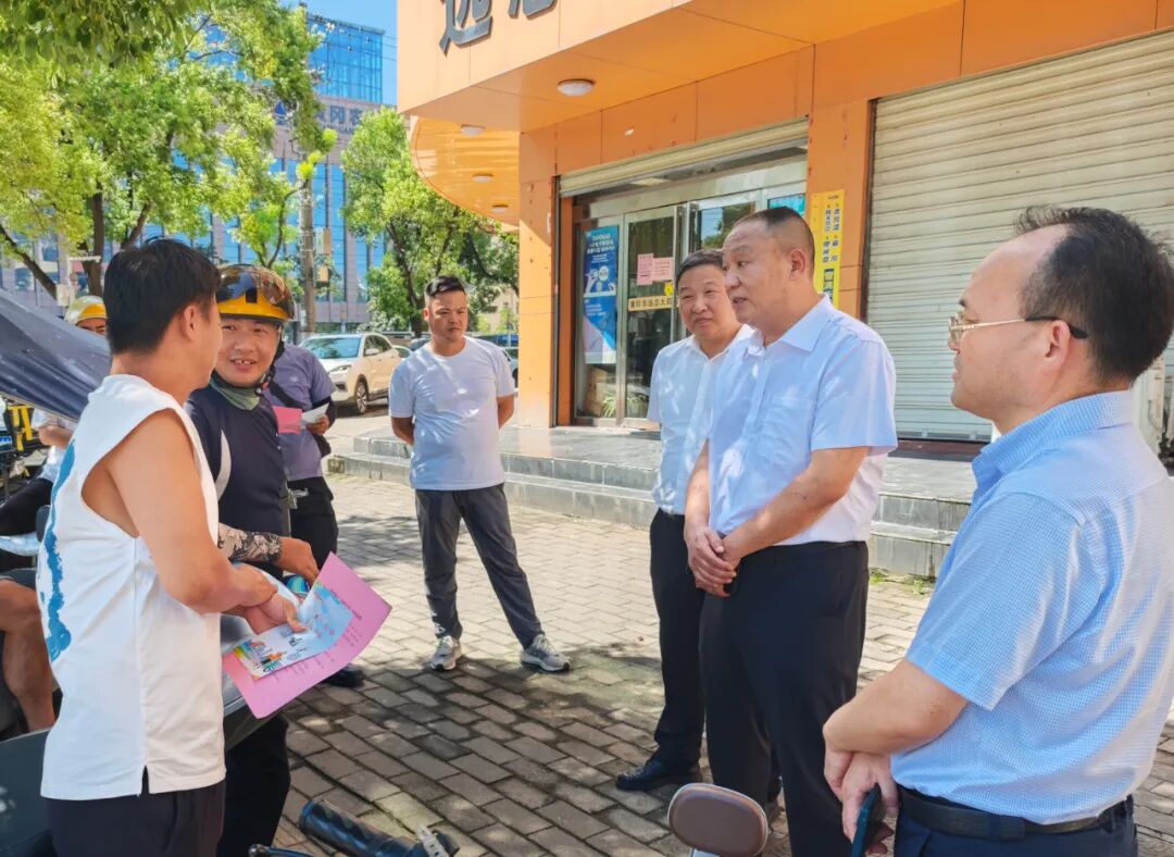 在饿了么保利站、美团黄州站,他们为到场的外卖骑手送上物资、送上关怀,声声叮嘱他们在工作中注意防暑降温。市委社会工作部部长、两新工委书记郭金城与外卖骑手们深入交谈,宣传市区暖“新”举措,记录每一条诉求,针对车辆换电、外卖进院校、诉求反馈渠道等问题现场研讨解决方案,让劳动者们切实感受到 “事事有回应” 的温暖,郭金城还叮嘱他们在高温天气下工作一定要注意交通安全、合理休息、谨防中暑。