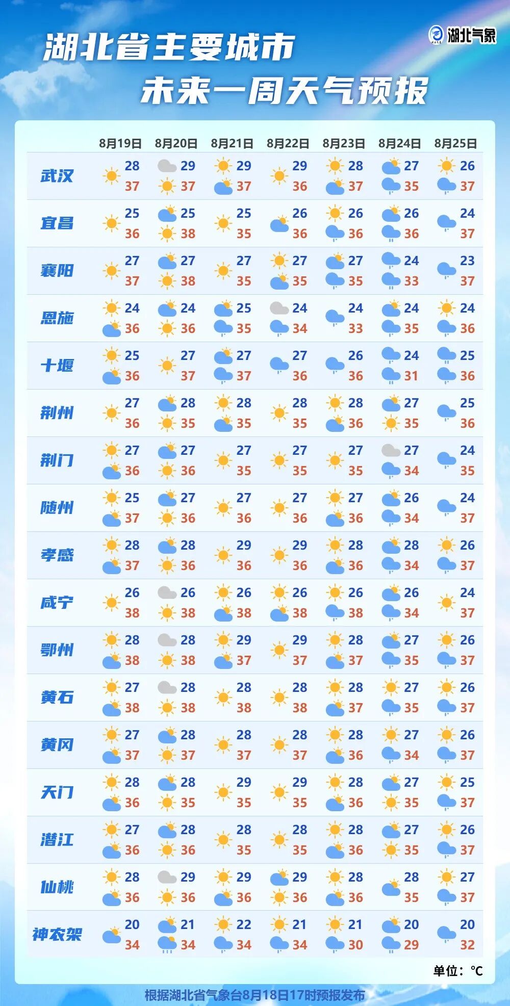 黄冈、黄石、咸宁可达37℃以上