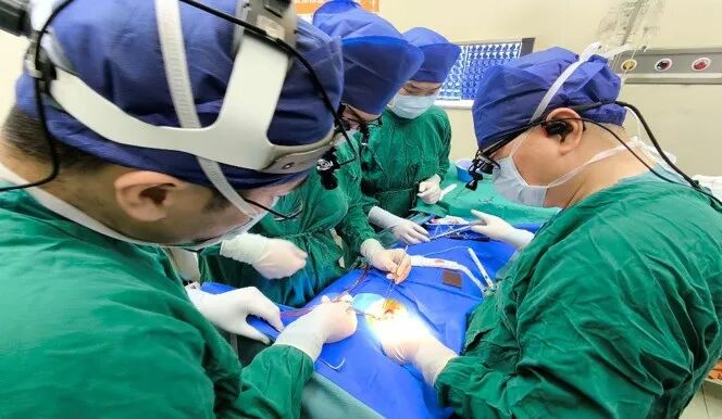 手术台上,陈华江教授、王新伟教授与麻醉科王成才教授、傅海龙教授、羊海琴护士长带领的精锐麻醉护理团队紧密协同,如同在刀尖上起舞。