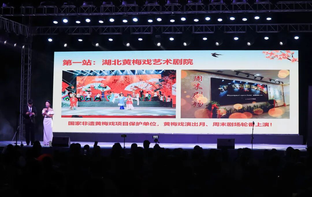 演出中,主持人也顺势将“戏”与“景”串成了线,向观众推介起黄梅的精品旅游线路:“咱黄梅不只有戏,更有好山好水。白天沿着线路走,看老祖寺的禅意漫山,四祖寺的宁静院落,五祖寺的恢宏殿宇,把‘灵润黄梅’的山水看够;晚上再听一段黄梅调绕耳,这才是到黄梅的‘地道体验’!”