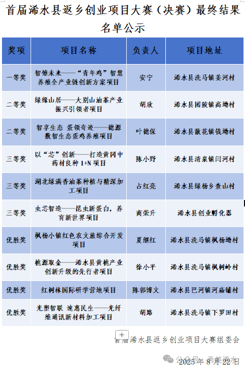 8月22日上午,以“我兴楚乡 ‘浠’望有你”为主题的首届浠水县返乡创业项目大赛决赛成功举办。本次大赛由中共浠水县委、浠水县人民政府主办,县委组织部、县人力资源和社会保障局承办,旨在为返乡创业人才搭建了政策对接、资源整合和成果转化的重要平台。