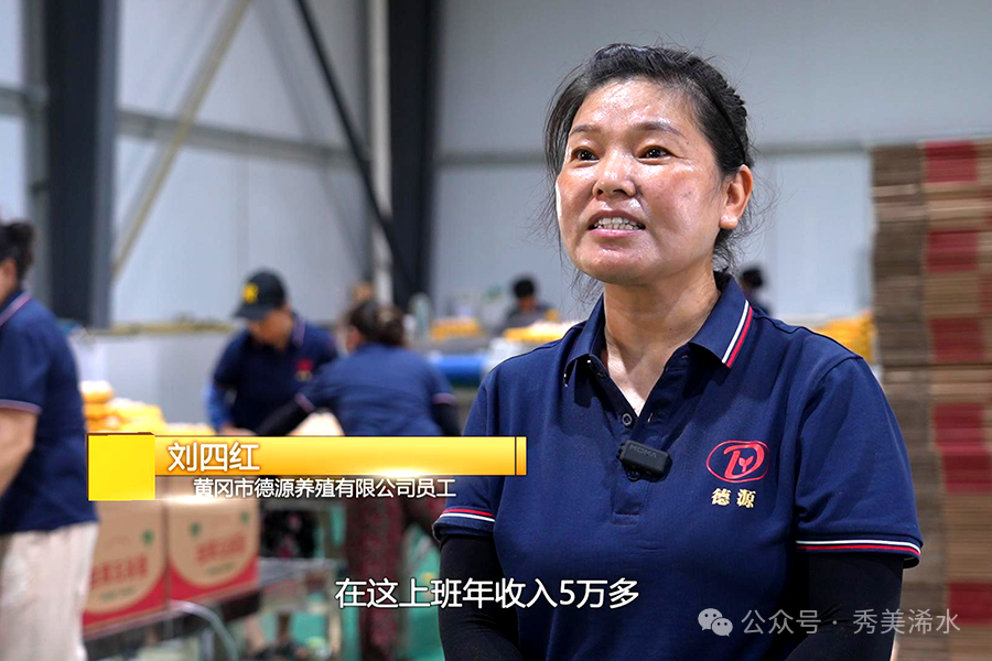 黄冈市德源养殖有限公司员工 刘四红:以前种地一年挣不到2万块,在这上班年收入5万多,还能学技术。
