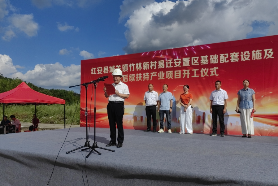 8月21日上午,红安县城关镇竹林新村易迁安置区基础配套设施及后续扶持产业项目开工。