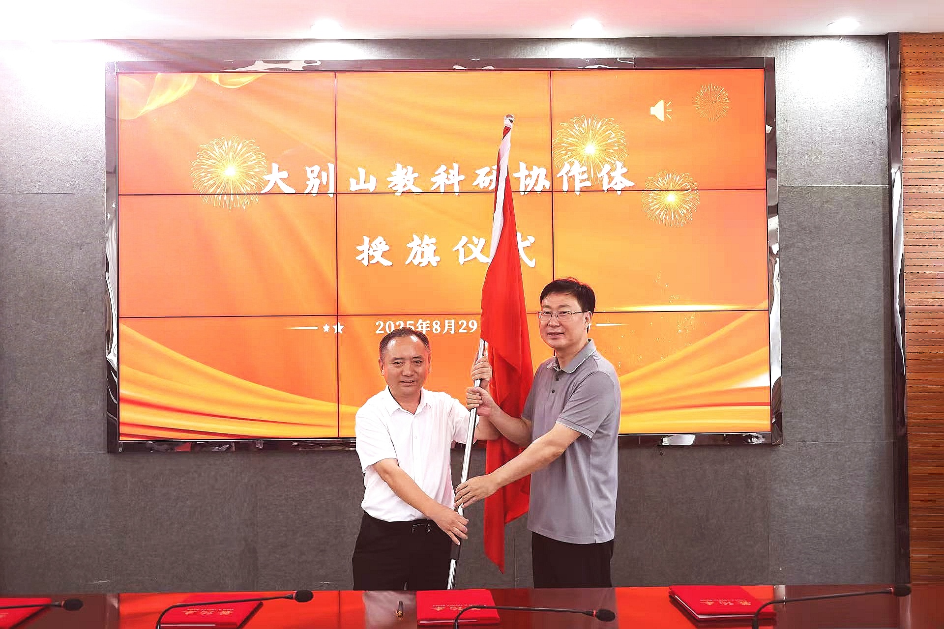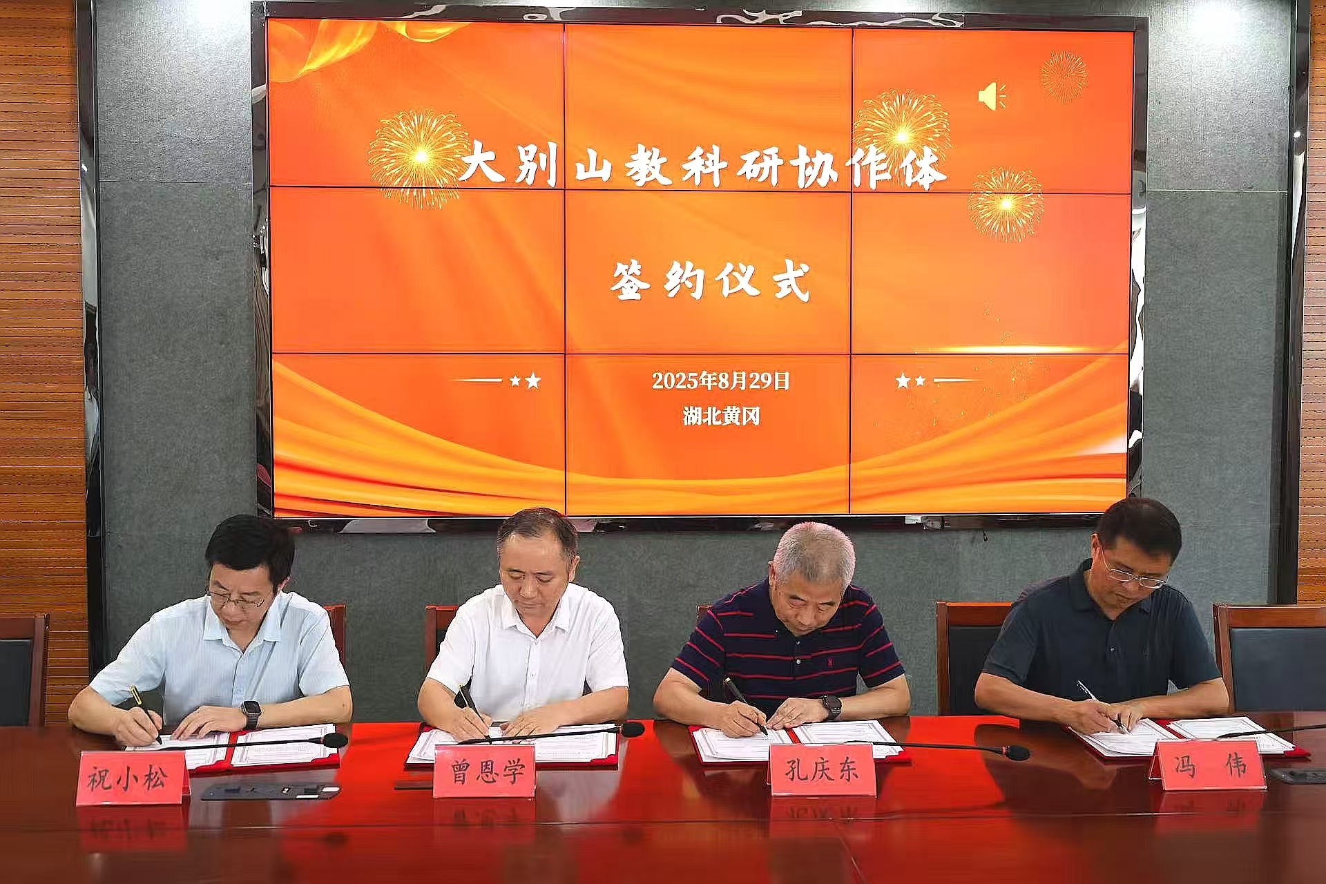 大别山区域山水相连、人缘相亲、文化相通,教育领域面临着共同的机遇与挑战。当天,四市教育部门相关负责人签订了大别山教科研协作体协议书,并举行大别山教科研协作体授旗仪式。