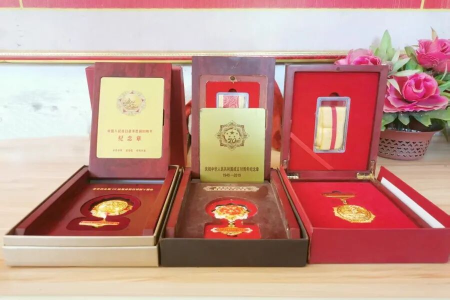 客厅老旧木桌上,3枚纪念章——抗日战争胜利80周年纪念章、抗日战争胜利70周年纪念章以及新中国成立70周年纪念章,在阳光下闪闪发光。大女儿熊能枝轻抚纪念章,眼眶泛红:“这是父亲的宝贝,一直用红布仔细包裹着。直到纪念章送来时,我们才渐渐知晓父亲藏了一辈子的英雄往事,此前只知他腿伤是打仗所致。”