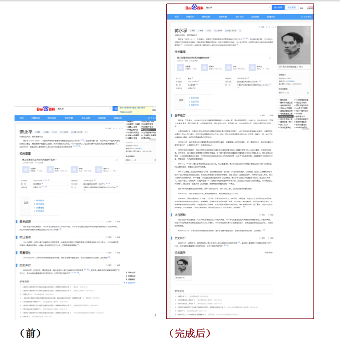 烈士蒋永孚百度词条前后对比(左为之前,右为修改完善后)