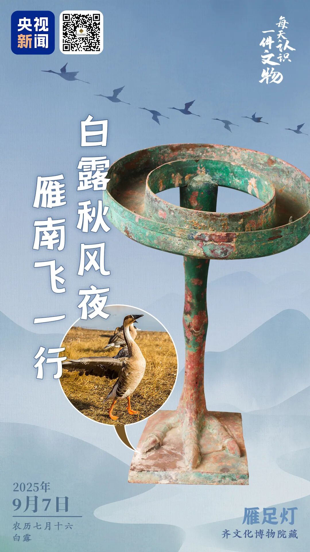 央视新闻联合全国博物馆推出文博科普产品《文博日历》,每天带你认识一件文物。雁足灯,收藏在山东齐文化博物院。凹槽圆形的灯盘用于盛放灯油,能同时点燃3根灯芯。灯柄是雁腿造型,脚蹼也刻画得非常逼真,既能当灯座、又能当把手,美观又实用。识别图中小程序查看详情↓