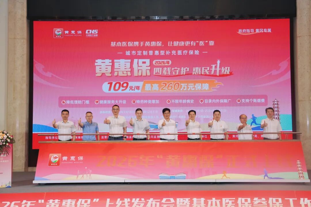 9月13日上午,2026年黄惠保上线发布会暨基本医保参保工作推进会在黄冈顺利召开。黄冈市人民政府、黄冈市医疗保障局、国家金融监督管理总局黄冈监管分局、市财政局、市农业农村局、市民政局、市保险行业协会、各县市区医疗保障局和医疗保障中心等相关部门领导,中国人寿保险股份有限公司黄冈分公司、中国人民财产保险股份有限公司黄冈市分公司等9家保险公司代表,运营平台宸汐健康及媒体记者共同出席会议,见证了2026年黄惠保的正式上线。