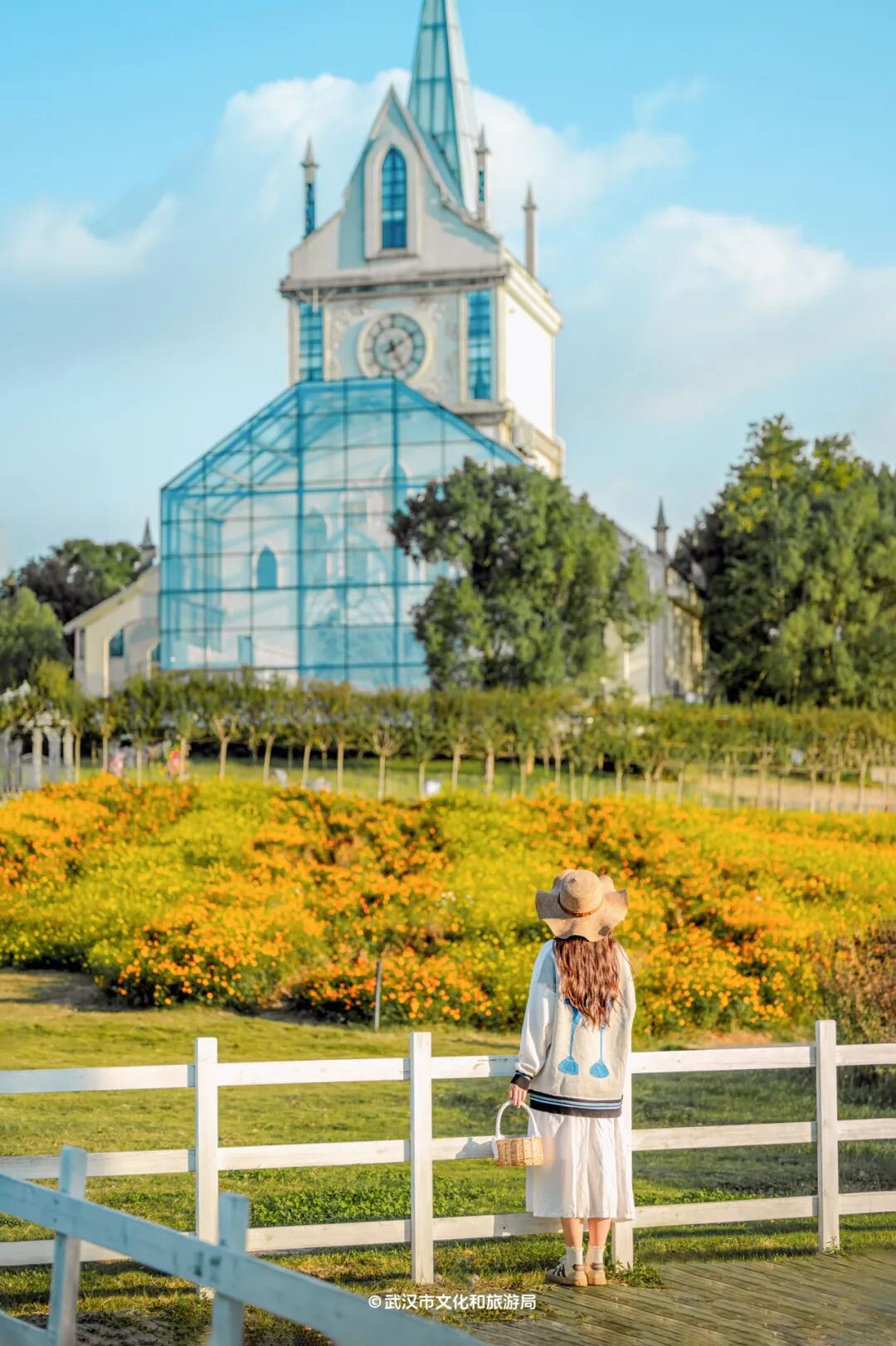 第二天,可以在武汉花博汇的花海里泡一整天。粉黛乱子草、向日葵陆续绽放,无边鲜花和童话城堡作背景,包出片的。
