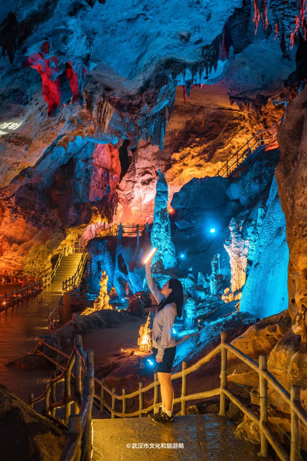 最后一站,可以去黄石阳新县百洞峡探险。洞内被划分成了六大展厅,就像一座溶洞博物馆,观摩千姿百态的钟乳石、石笋,感受5亿年地质演变带来的视觉震撼。