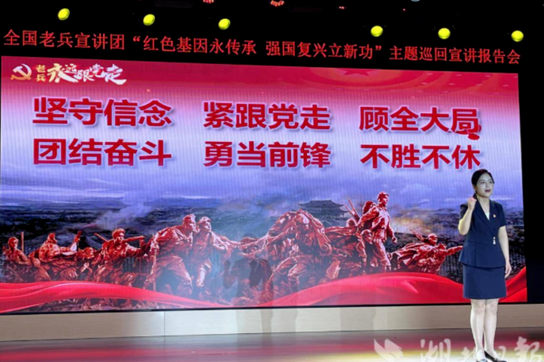 9月11日,全国老兵宣讲团主题巡回宣讲报告会在武汉举办。来自红安县的退役女兵聂荣华作为首位宣讲人率先登台。
