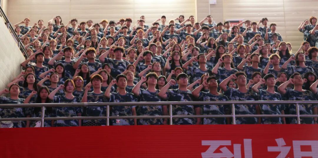 活动最后,大别山精神宣讲团团长甘洪瑶举起右拳领誓,全场学子齐声跟读:“我以青春的名义宣誓:赓续大别山红色血脉,传承黄师百廿年荣光;以忠诚铸魂,紧跟党走不动摇……”誓言声响彻整个体育馆。