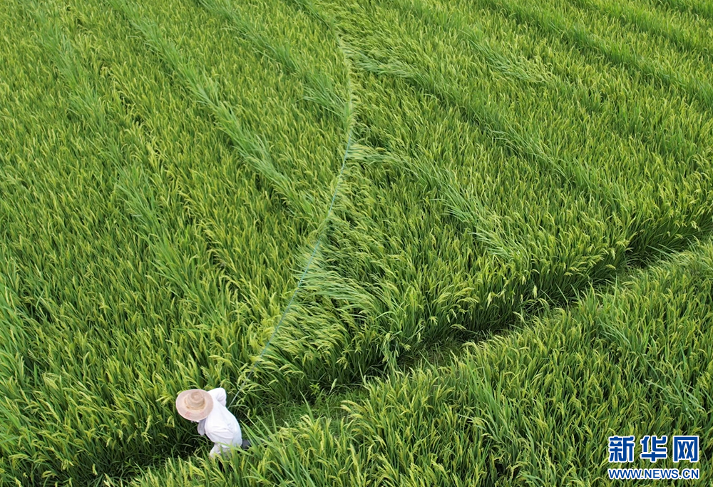 图为杂交水稻“赶花”。新华网发