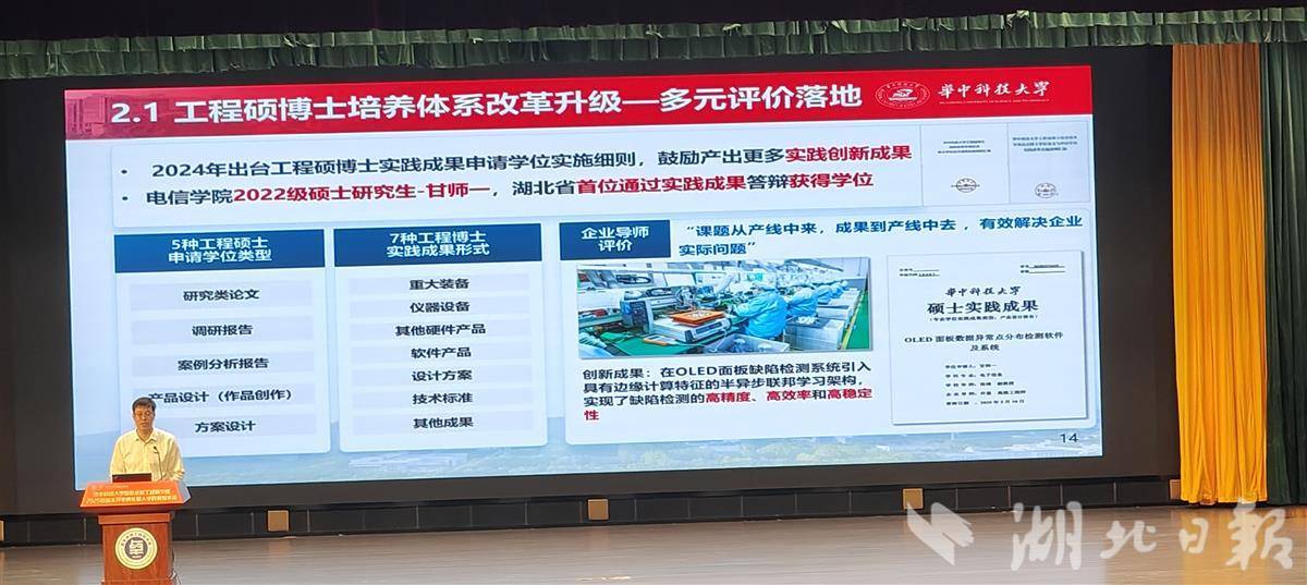 作为全国首批国家卓越工程师学院建设高校,华中科技大学积极探索工程硕博士培养模式改革,逐步建立工程硕博士实践成果申请学位新机制,专门制定工程硕博士改革专项试点硕士学位论文成果实施细则、博士学位论文与申请学位实践成果实施细则,要求成果报告选题应与专业实践紧密联系。细则还建立符合卓越工程师培养定位、体现不同行业领域工程实际的学位授予标准,为更好地破除唯论文、唯奖项,建立多元化学位评价体系提供了坚实制度保障。