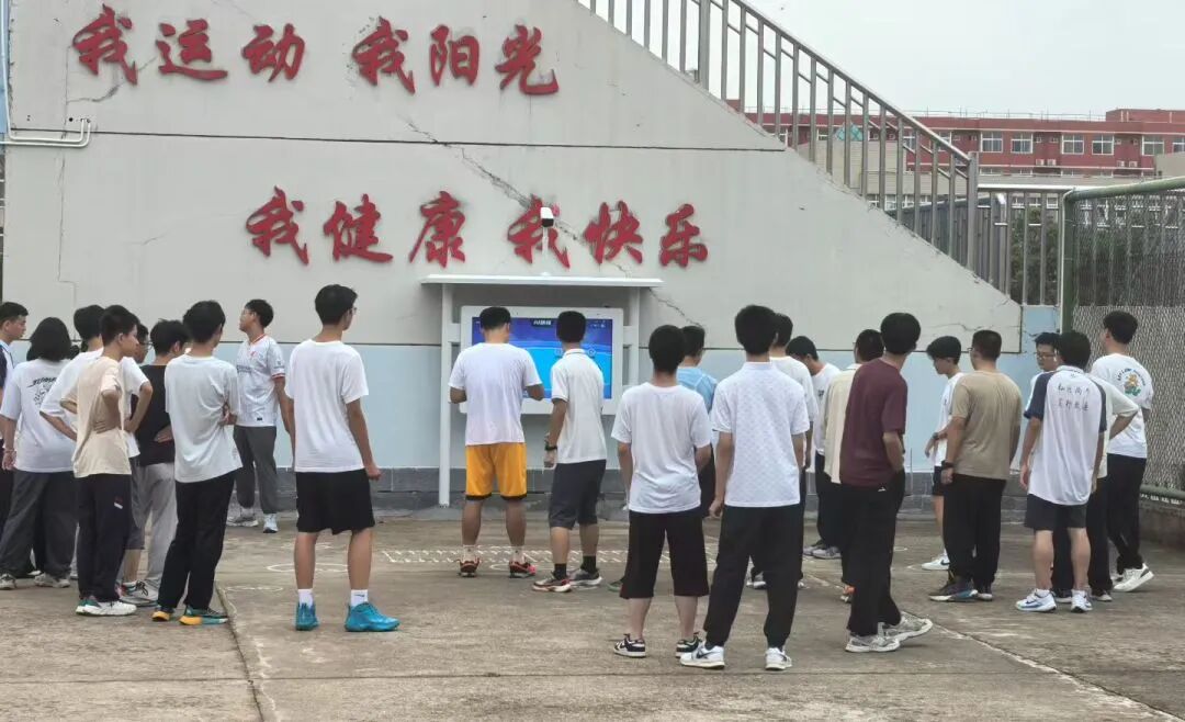 系统里录进了全校师生的脸,只要学生在跑道上跑步即可被摄像头自动记录,生成“健康跑”数据档案,而且数据可以不断累积。此外,田径场南侧还安装了跳远、跳绳、纵跳、蹲跳、投球五项AI运动游戏,学生选定参与项目,面对摄像头,站立相应位置,游戏即可启动,运动完成后,每个项目的屏幕上都会展示排名和成绩。利用科技赋能,提升师生运动热情。