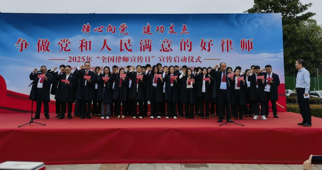 活动在庄严的国歌声中开幕。此次活动旨在打破群众与律师行业的 “距离感”,让专业法律服务走进寻常百姓家。随后,45 岁以下青年律师代表身着律师袍,高举右拳庄严宣誓,“忠于宪法法律,维护当事人合法权益,做党和人民满意的好律师” 的誓言在现场回荡。