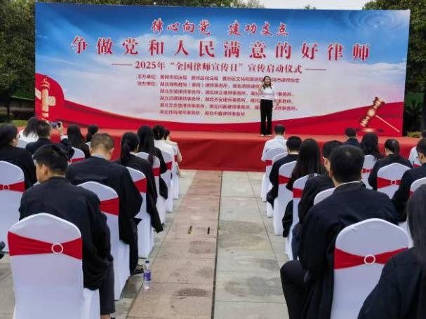 为贯彻 “律心向党 建功支点” 活动要求,让法律服务贴近民生,9 月25 日上午,由黄冈市司法局、黄州区司法局、黄州区文化和旅游局、黄冈市律师协会联合主办的2025年“全国律师宣传日” 活动在李四光纪念馆门前开启。黄冈城区13 家律师事务所的律师代表,及市、区司法局相关负责人共同参与,为市民送上 “法治大礼包”。