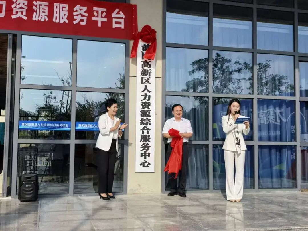 上午8时30分,在共同拉动下,红绸缓缓下落,“黄冈高新区人力资源综合服务中心”正式亮相,现场掌声如潮。