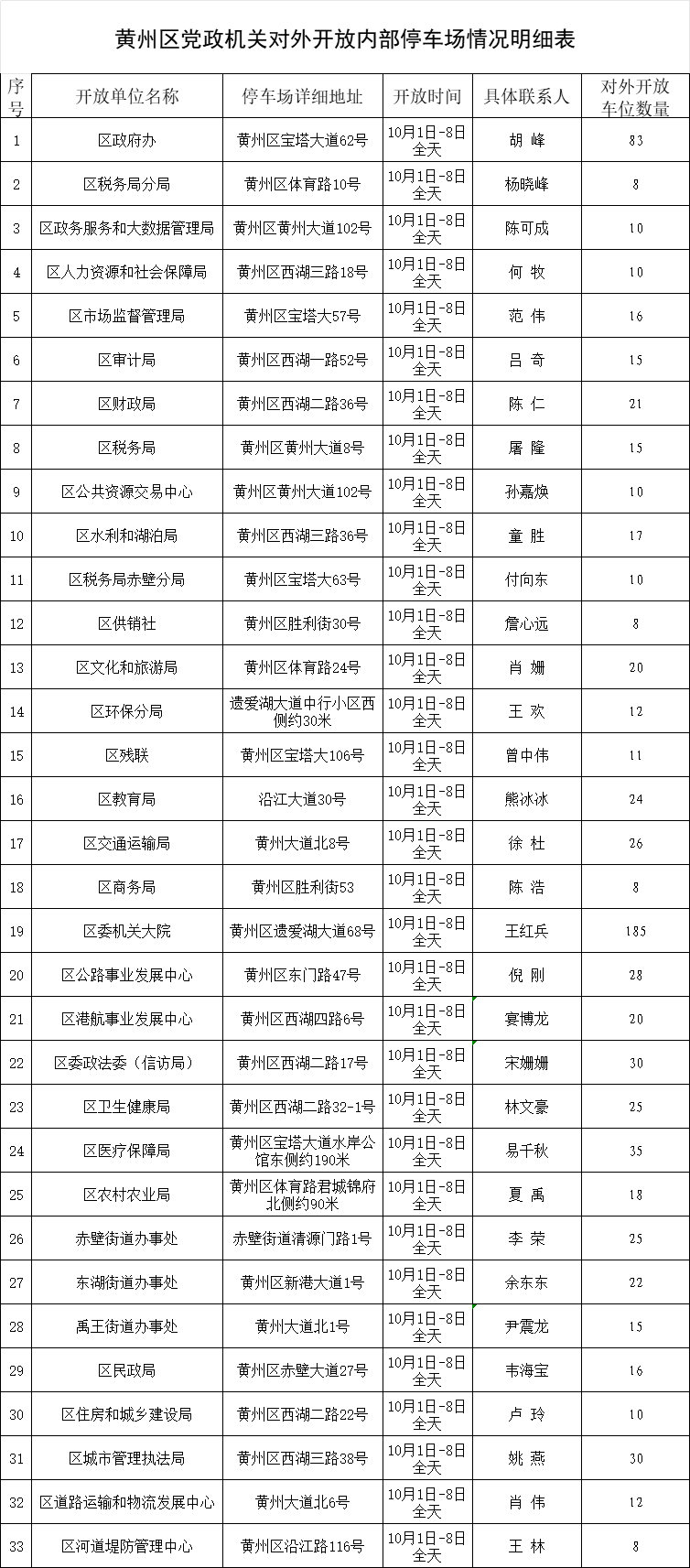 黄冈城区33家党政机关及事业单位