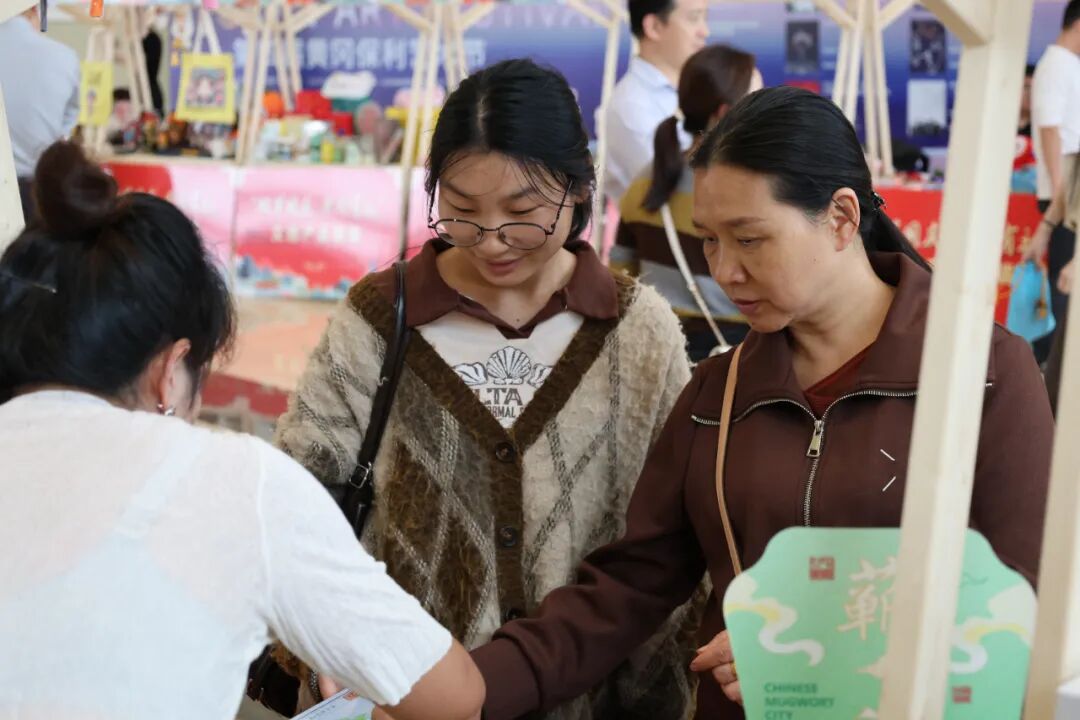 活动当日,黄梅戏大剧院大厅变身文创乐园。黄冈各县市区都将自己的特色文创产品摆满展台。东坡盲盒形象可爱、黄州美景文创笔记本雅致清新、地域特色手作满含温度,每件文创都承载着黄冈的故事。无论是自留纪念还是馈赠亲友,都能在这里与黄冈的文化魅力不期而遇。