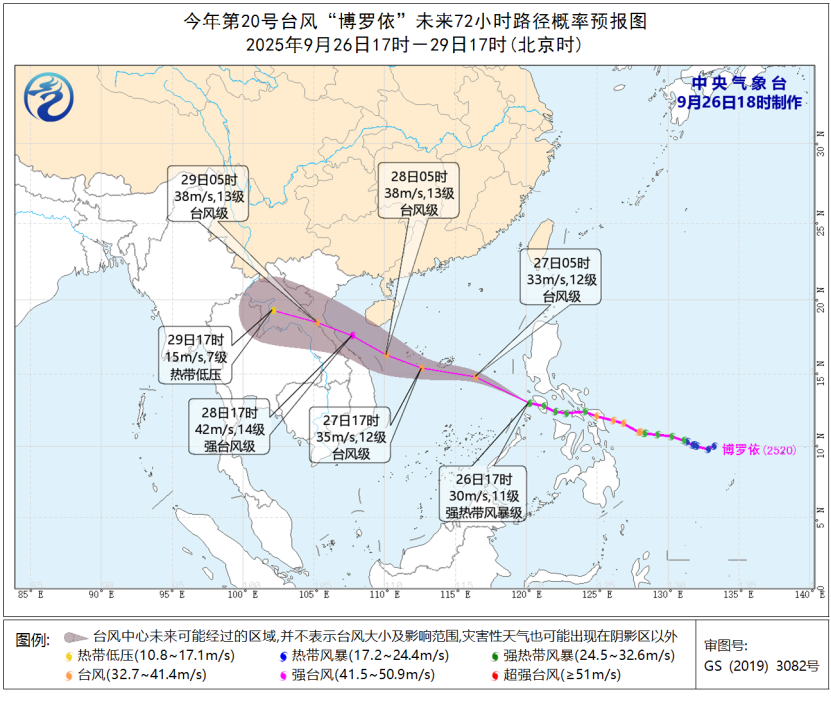 中央气象台26日18时发布台风黄色预警:预计,今年第20号台风“博罗依”将进入南海东部海域,之后继续向西北方向移动,向海南岛南部海域靠近,强度逐渐增强,最强可达台风级或强台风级。