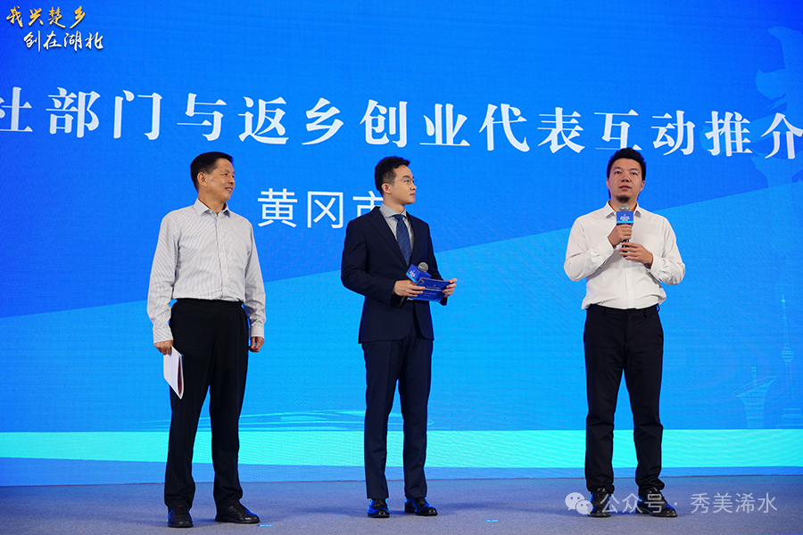 在湖北省返乡创业大湾区推介会上,黄冈市人社局负责人现场推介了黄冈包括浠水在内的创新创业政策与优良环境,向大湾区抛出了合作的“橄榄枝”,浠水县返乡创业代表海归博士潘新星与黄冈市人社局负责人进行了精彩互动,深入交流返乡创业经验与区域合作机遇。分享了扎根家乡沃土创业创新的实践与感悟,为有意返乡的各界人士树立了标杆,展现了浠水人才回归、智力返乡的蓬勃生机。活动中,黄冈市人社局负责人与浠水籍有意愿返乡创业企业家现场签订了回乡投资协议。