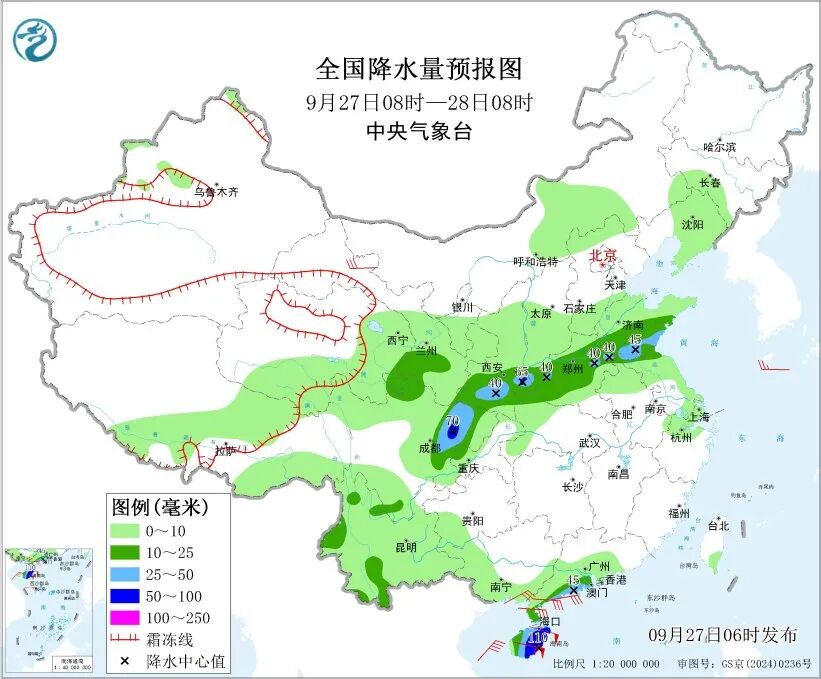 中央气象台27日18时发布暴雨黄色预警,预计27日8时至28日8时,四川东北部、云南南部和西部、青海东南部、甘肃南部、陕西南部、河南中北部、山东中南部、江苏北部、广东西南部、海南岛等地的部分地区有中到大雨,其中,四川东北部、陕西南部、海南岛中东部等地的部分地区有暴雨,局地有大暴雨。