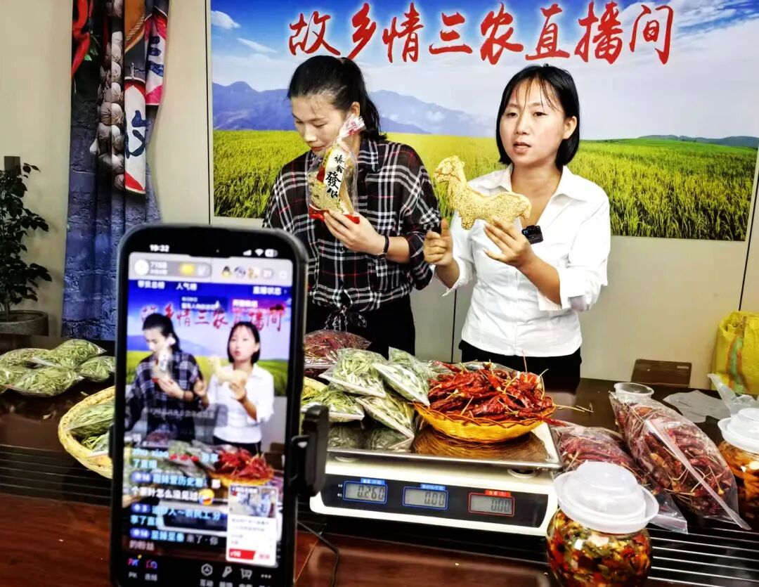 “家人们看过来!这是咱龙顶寨村刚自然晾晒的生态干辣椒,色红肉紧、甜中带辣,全是椒农亲手种的好货!” 每晚7点,梅川镇农业技术推广服务中心的 “三农直播间” 准时热闹起来。没有专业主播的花哨话术,同心村党总支书记宋美霞、解垴村副书记秦旭云、胡政村副主任邵小玉等村干部,手捧新鲜农产品,用带着乡土气息的朴实话语介绍产品。仅两小时,就能卖出100多单 —— 这个由村干部组成的助农团,为家乡特产外销架起了一座 “高速桥”。