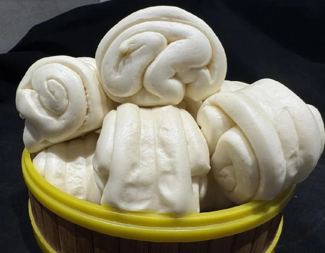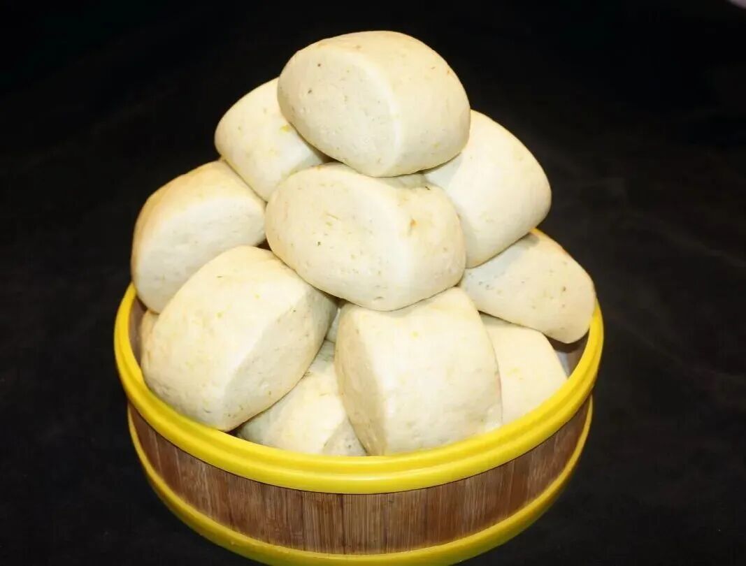 面粉加鲜菊花、福白菊粉,用老面发酵,蒸得金黄,带着菊花的清香,微甜不腻,口感劲实,吃起来有嚼劲,早上配杯豆浆,清爽又舒服,还能清肝明目,太适合打工人了。