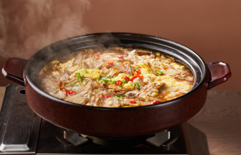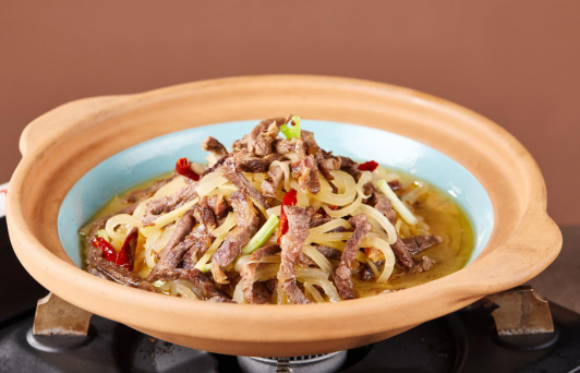 罗田黄牛肉炖得软烂,加了罗田苕粉皮和红心萝卜,汤汁浓稠,牛肉香、萝卜甜、苕粉皮吸满汤汁,咸鲜中带点微辣,拌米饭能吃两大碗,秋冬吃这个超下饭。