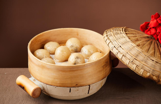 黄州萝卜做成圆子,塞了基围虾和五花肉,蒸得滑嫩爽口,萝卜的清甜混合着虾的鲜和肉的香,咸鲜入味,名字也吉利,过年过节吃这个,寓意“蒸蒸日上”。