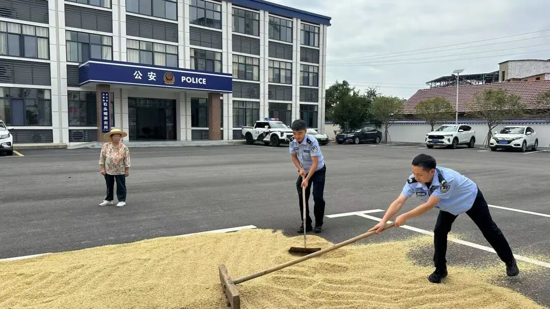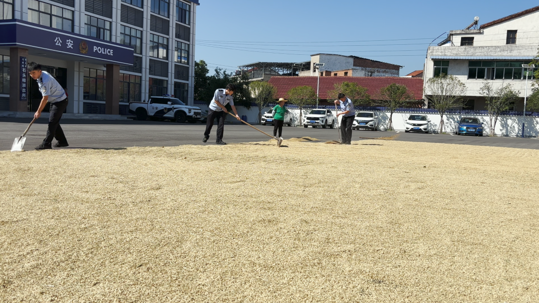 “这院子干净、通风好,晒谷子最合适!”村民一边翻着稻子,一边竖起大拇指,“警察同志不光给地方,还动手帮忙,真是雪中送炭!”一句“雪中送炭”,道出的是老百姓最真实的心声。对派出所来说,腾一块地是小事,但对农户而言,却是关乎一年收成的大事。一粒粮,千滴汗,民辅警们用最实在的行动,守护着乡亲们的“粮袋子”。
