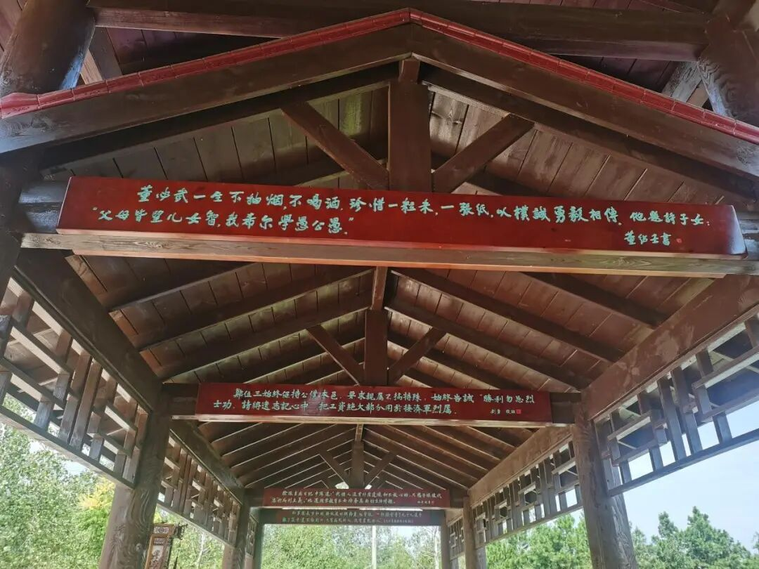 书艺廊的设计同样暗藏巧思。它并非孤立的建筑,而是与公园内的山水林田、长桥祠堂自然相融。朝晖映廊、夕阴染阶,春花伴木雕、夏木绕横梁,优美的自然景致与厚重的历史氛围相互映衬,让每一处角落都充满韵味。因支持武汉六环建设迁葬于此的英雄母女合葬墓,连同文采斐然的《墓志铭》,再加上廊下兼具取景框功能与纪念意义的《紫潭河村烈士铭文并序》镌刻,更为这片空间增添了文学的厚度与历史的凝重感,让人在漫步中便能触摸到岁月的温度。