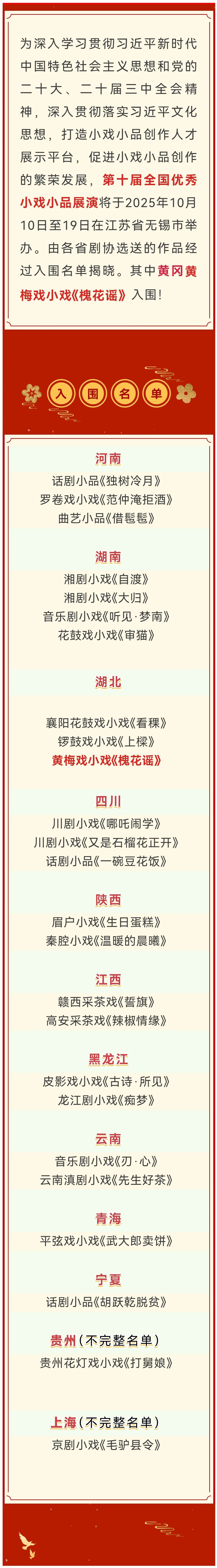 全国优秀小戏小品展演,黄冈黄梅戏小戏《槐花谣》入围!