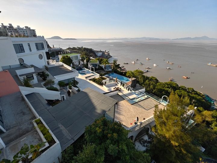 2024年11月29日,游客在宁德市霞浦县三沙镇东壁村一家民宿观景平台游玩(无人机照片)。新华社记者 姜克红 摄