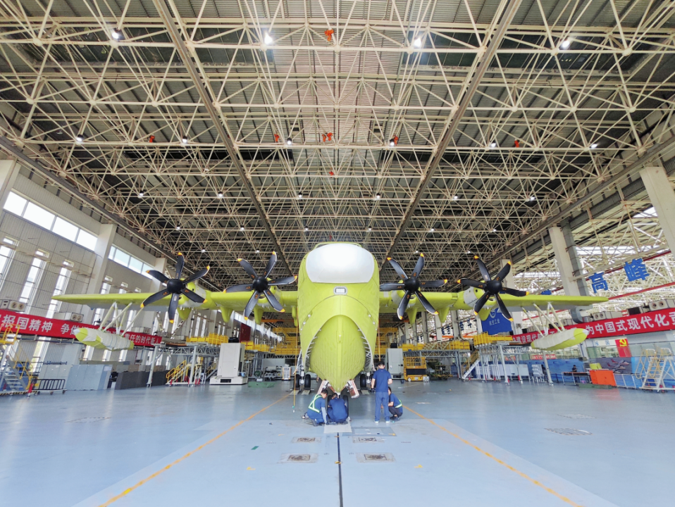 近日,我国大型民用水陆两栖飞机AG600“鲲龙”批产第三架机总装下线并圆满完成生产试飞。