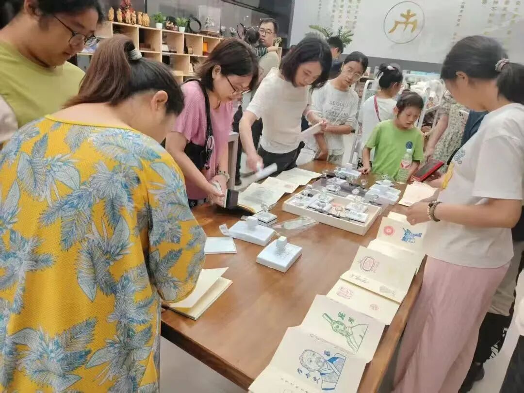 文创互动更添温情。盖章体验区成热门打卡地,睡虎地秦简纹路、东汉陶楼轮廓、木牍家书意蕴化作特色印章,游客免费为明信片、笔记本盖章。不少人在“木牍家书”明信片上写下思念,让古老书信文化焕新活力。