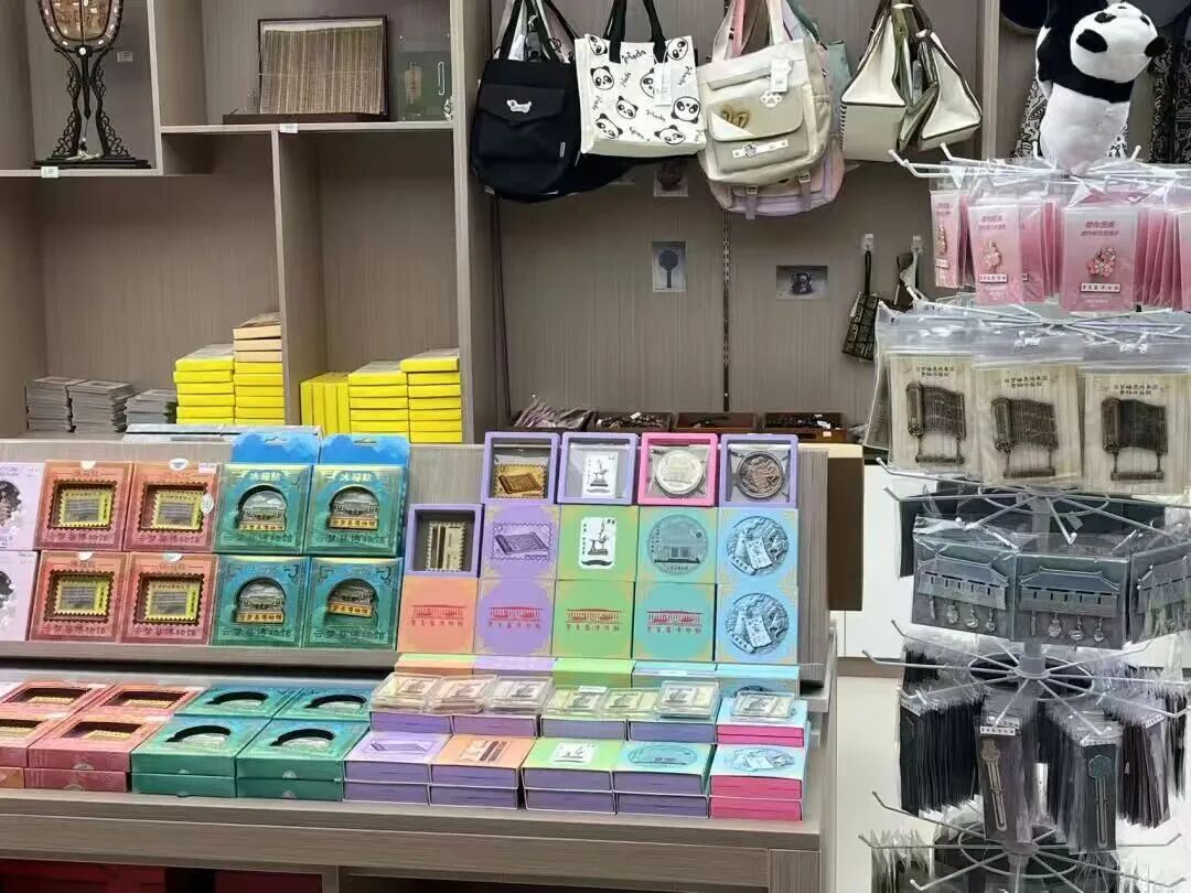 展架旁,秦简卷轴冰箱贴还原睡虎地秦简古朴形态,烫金复刻《秦律十八种》条文,让冰箱变身“微型历史展馆”;东汉陶楼纪念币复刻楼阁飞檐、门窗斗拱,仿古做旧质感兼具收藏与纪念价值。