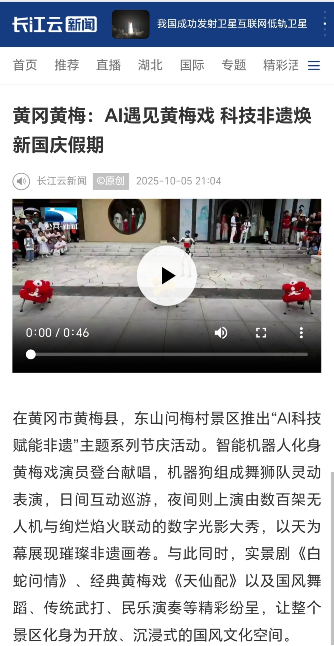 《黄冈黄梅:AI遇见黄梅戏 科技非遗焕新国庆假期》