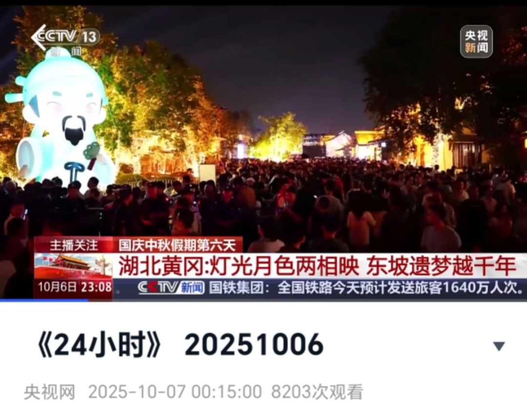 《[24小时]国庆中秋假期第六天 湖北黄冈:灯光月色两相映 东坡遗梦越千年》