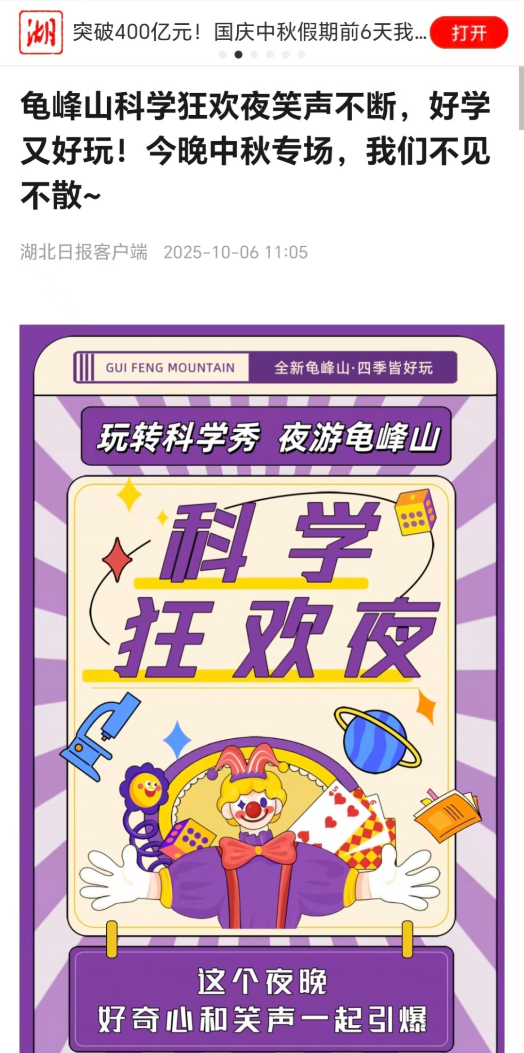 《龟峰山科学狂欢夜笑声不断,好学又好玩!今晚中秋专场,我们不见不散~》