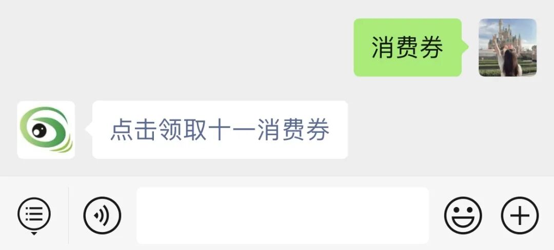 2、在公众号消息菜单栏选择“消费券”,或输入关键词“消费券”,弹出链接后,点击抽奖即可。