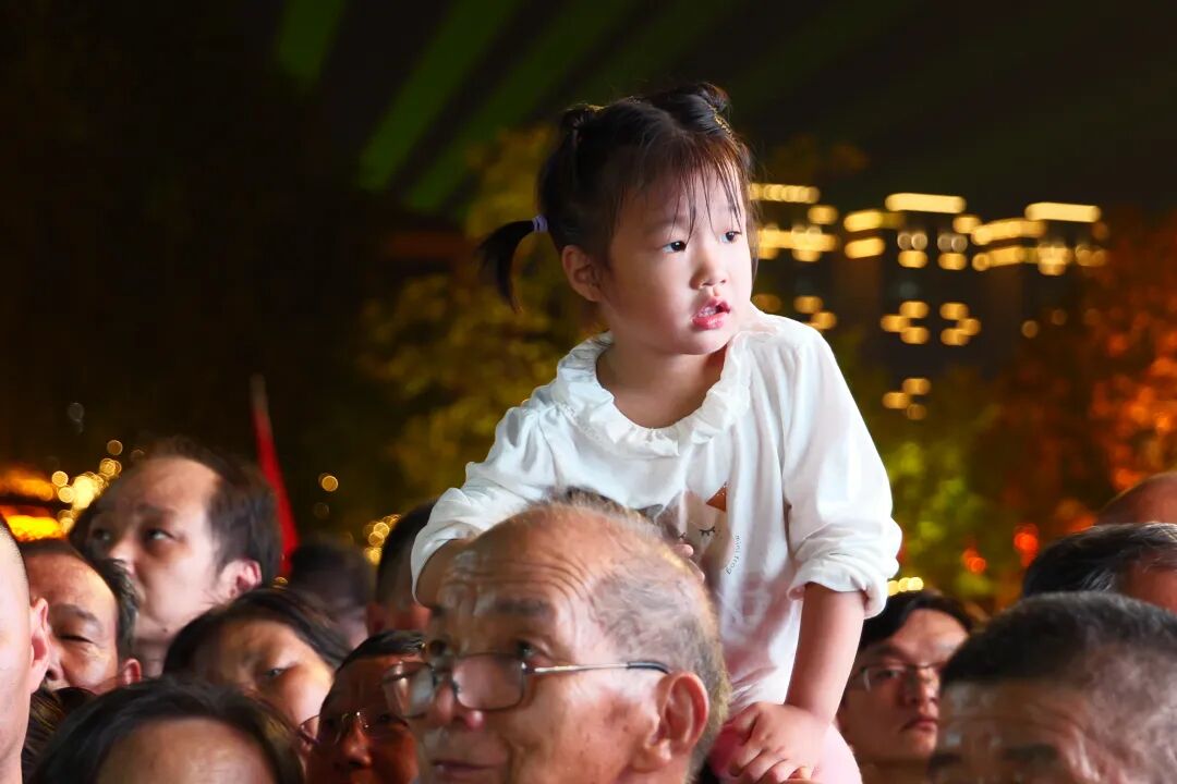活动现场人山人海,大量市民和游客把身体靠在安全护栏上观看启动仪式上的演出,一些家长把孩子托举在肩膀上,还有一些人高举手机支架全程拍摄。