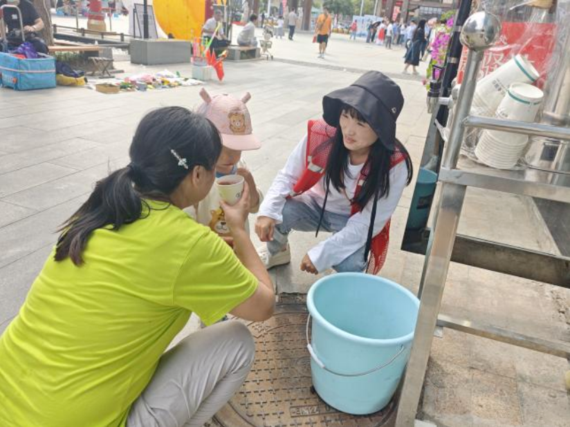 在红卫社区的“爱心茶水摊”前,志愿者们为过往的市民和游客递上一杯杯暖心茶水。“喝着这杯热茶,感觉心里都暖暖的,你们的服务太周到了!”一位接过茶水的游客连连称赞着这项暖心服务。