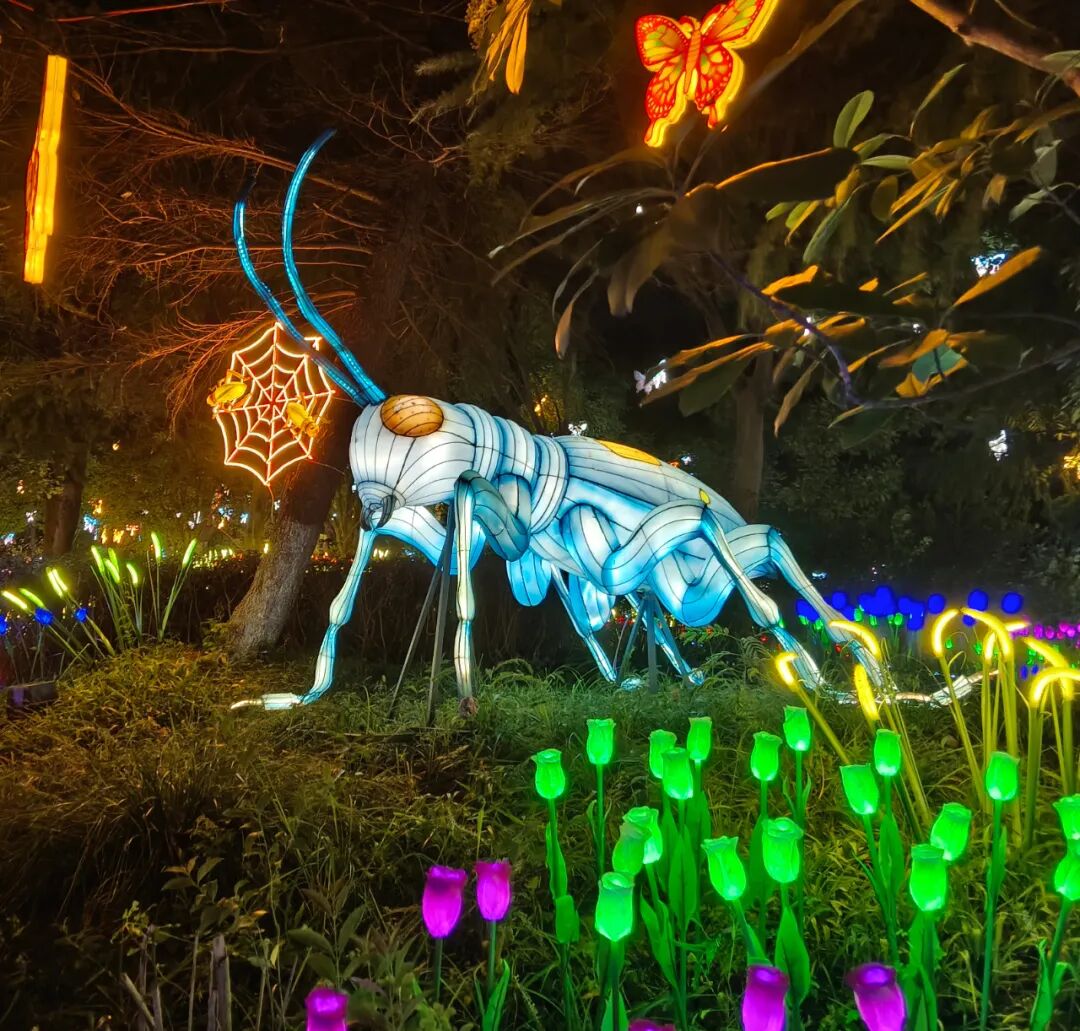 奇幻的灯光化作蝴蝶、瓢虫、萤火虫