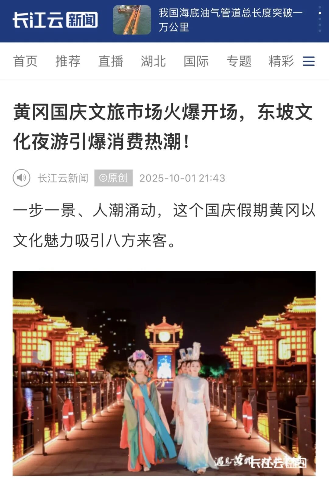 《黄冈国庆文旅市场火爆开场,东坡文化夜游引爆消费热潮!》