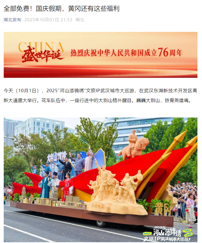 《全部免费!国庆假期,黄冈还有这些福利》
