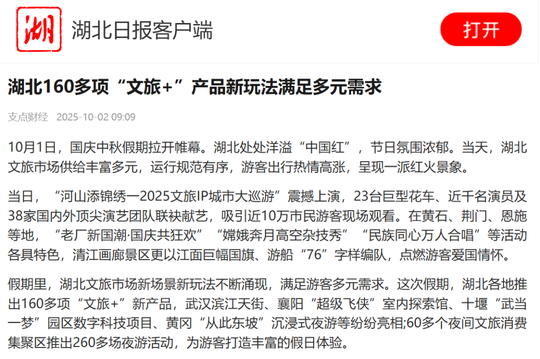 《“十一”假期湖北文旅新场景点燃游客出游热情》